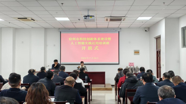 为深入学习贯彻习近平总书记考察安徽重要讲话精神及党的二十大和二十届历次全会精神,全面落实科技创新工作部署要求,11月24日至25日,宿州市科技创新体系建设暨人工智能实践运用培训班在市委党校成功举办。全市各县区政府、市管园区管委会、市直有关单位分管负责人,各县区科技局、园区科技主管部门主要负责人共60余人参加培训。