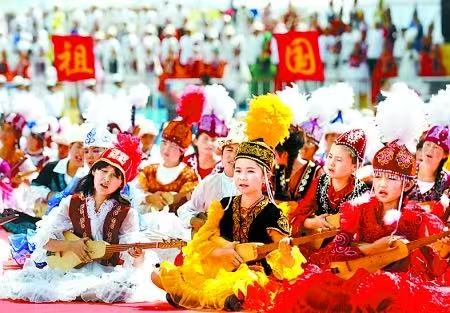 ▲在新疆乌恰县举办的玛纳斯国际文化旅游节上,小演员们在表演。(图片来源:新华社)