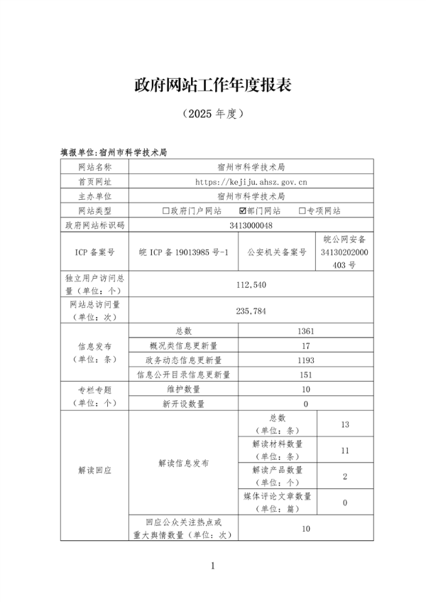宿州市科学技术局2025年度政府网站工作报表.doc